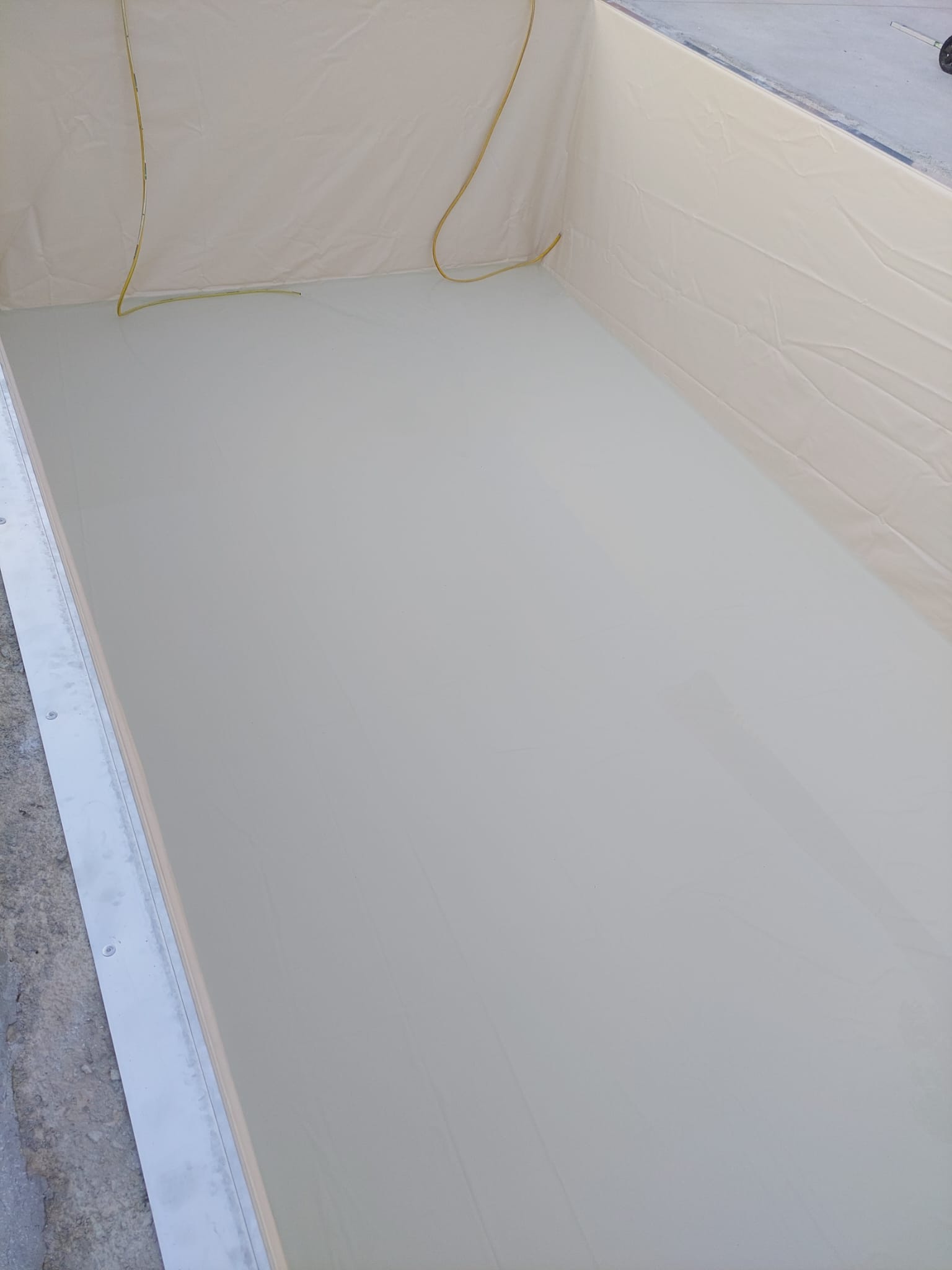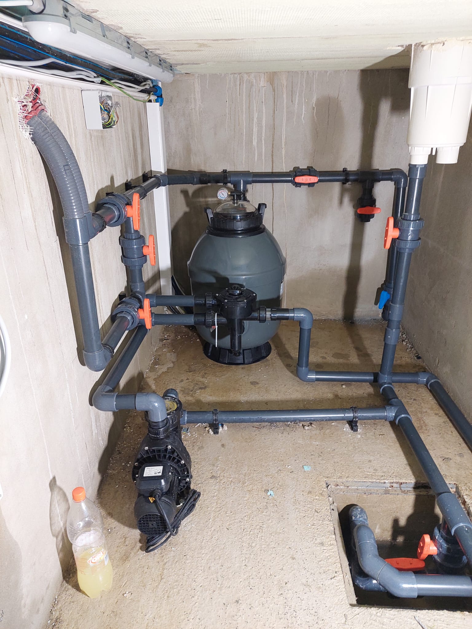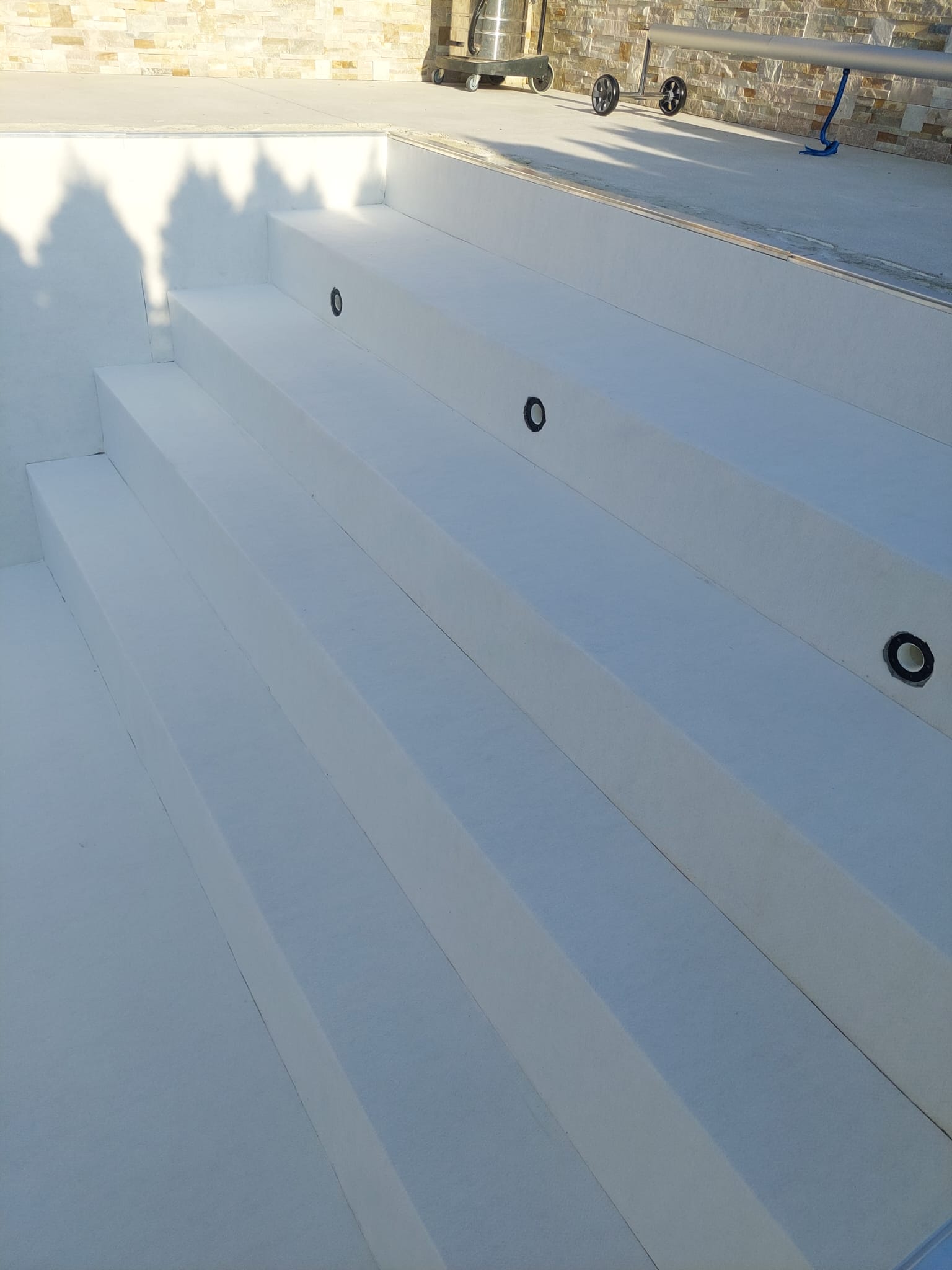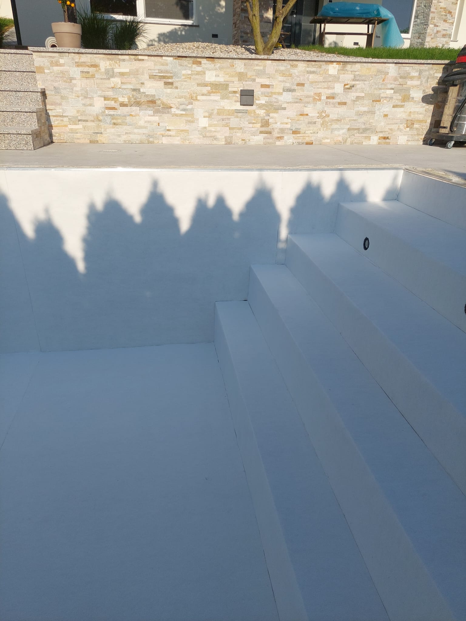 Izvedba je vključevala natančno pripravo bazenske školjke, hidroizolacijo, vgradnjo folije ter namestitev tehničnega sistema za optimalno delovanje.