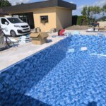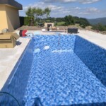 Bazen je bil izveden z natančno pripravo podlage, strokovno izvedbo tesnjenja in estetsko dovršeno montažo folije nove generacije.