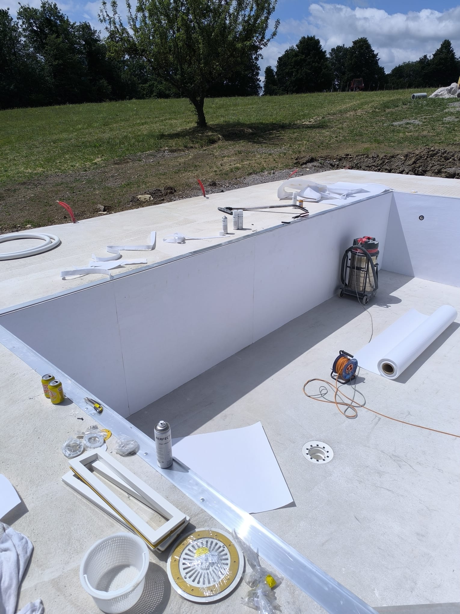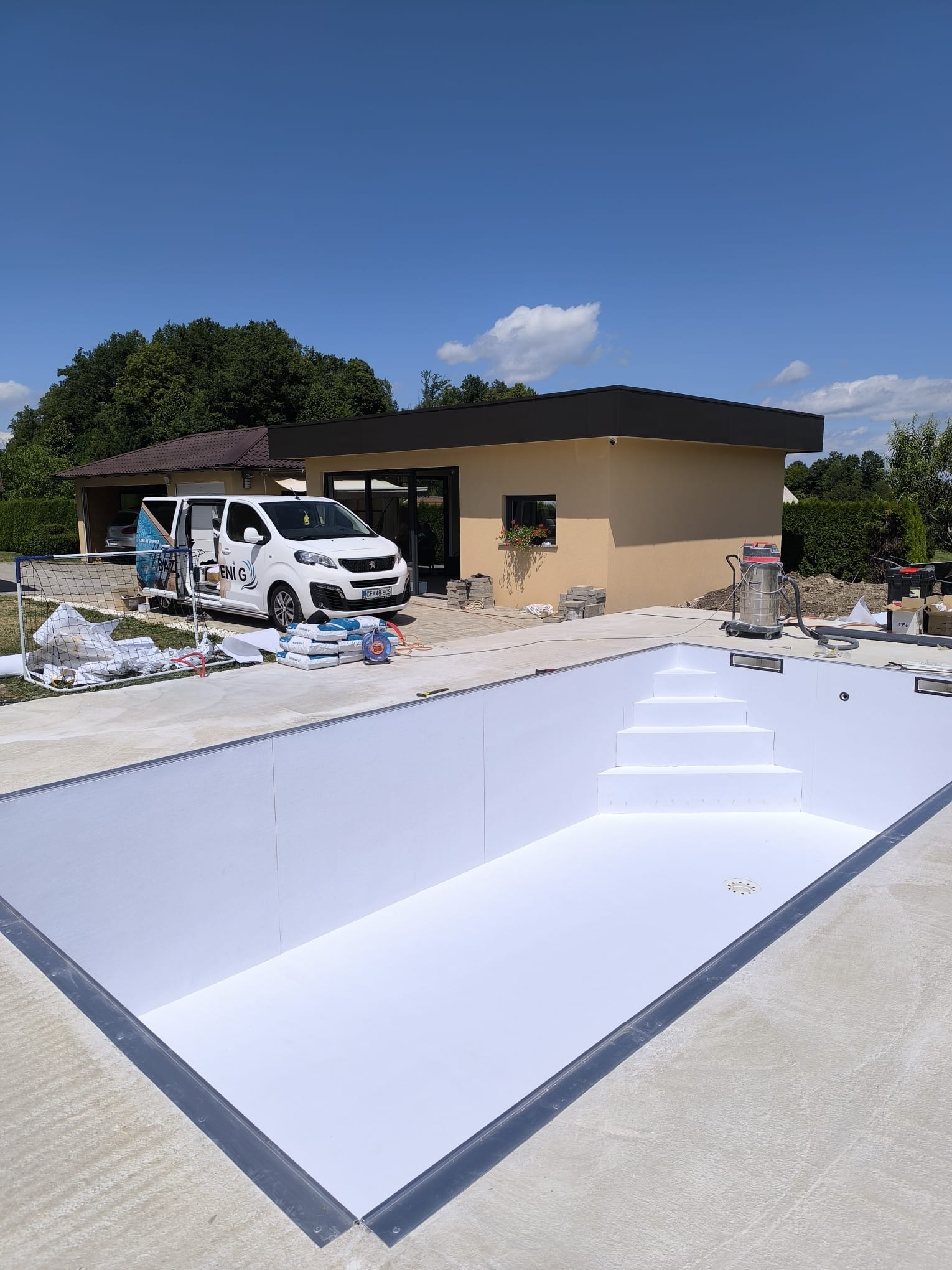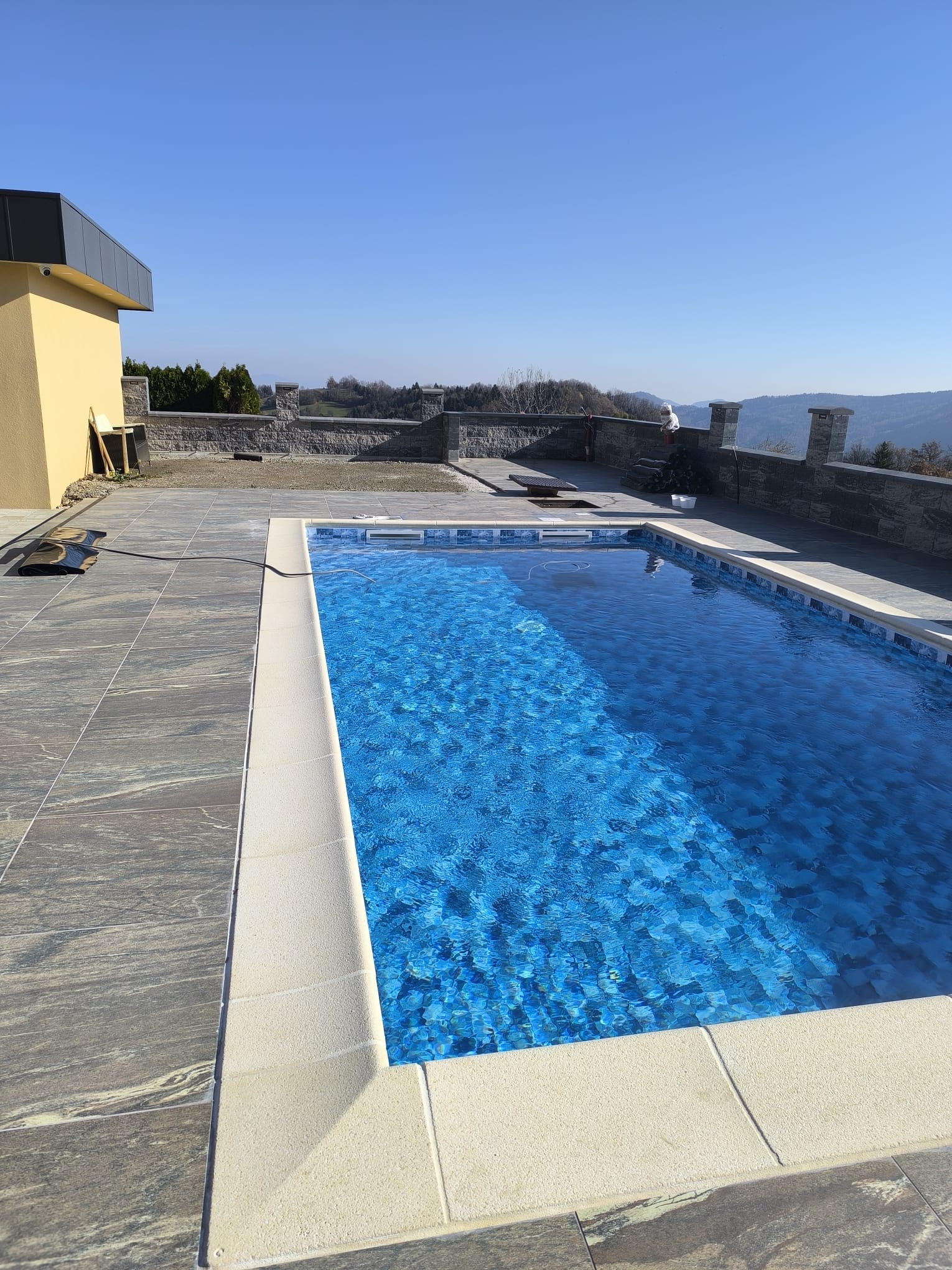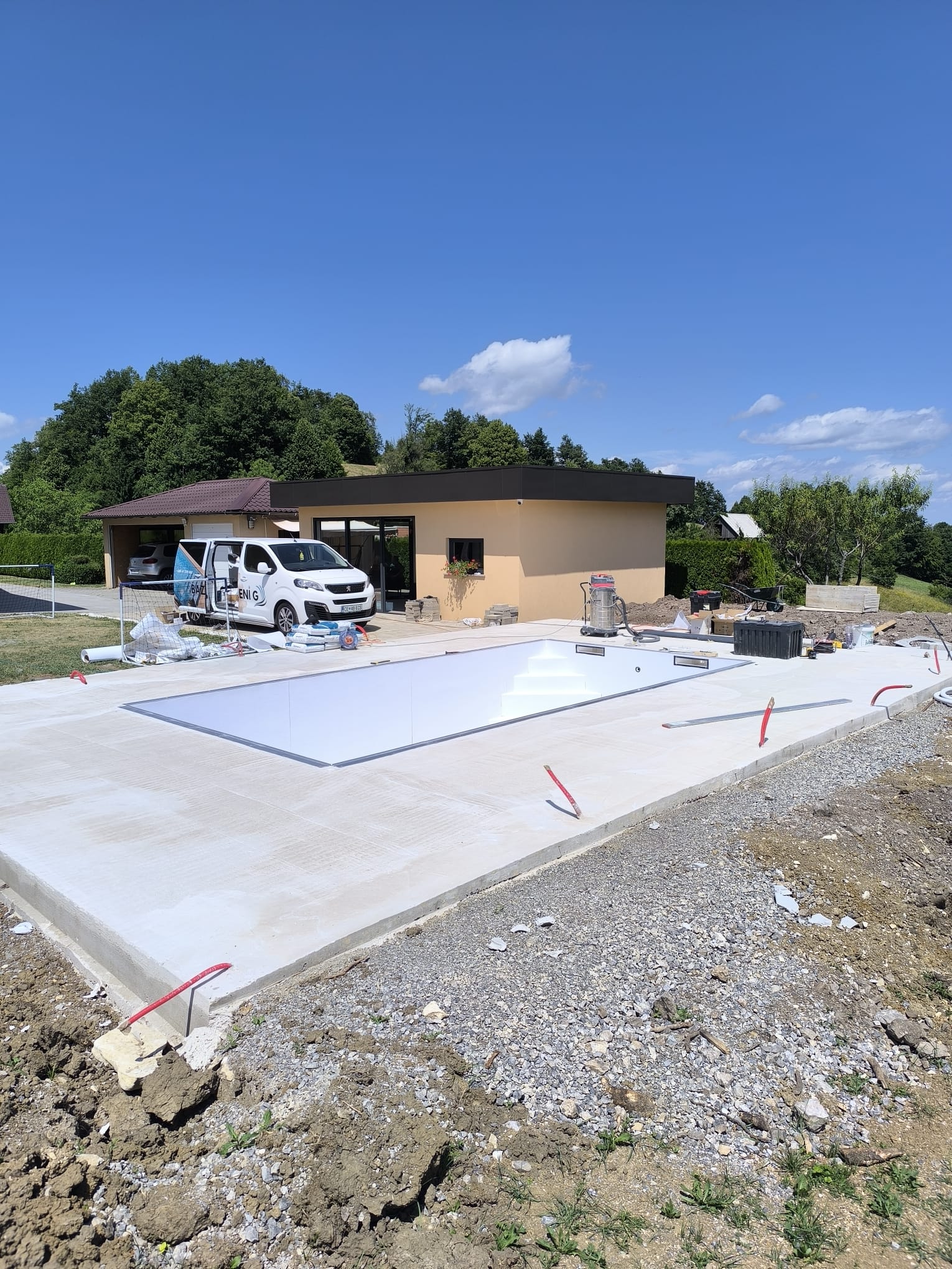 Bazen je bil izveden z natančno pripravo podlage, strokovno izvedbo tesnjenja in estetsko dovršeno montažo folije nove generacije.
