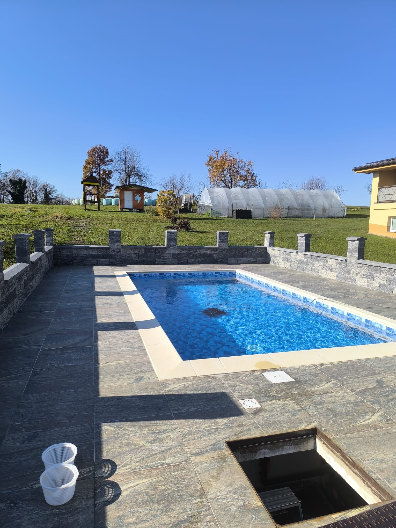 Projekt je bil zaključen v letu 2025, vključno z izvedbo zimskega servisa za zaščito sistema in pripravo bazena na naslednjo kopalno sezono.