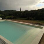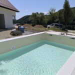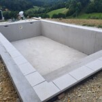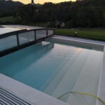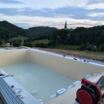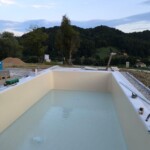 Celovit projekt izgradnje bazena, vključno z vgradnjo strešne konstrukcije, izvedbo filtracijskega sistema ter polaganjem kamnitih obrob.