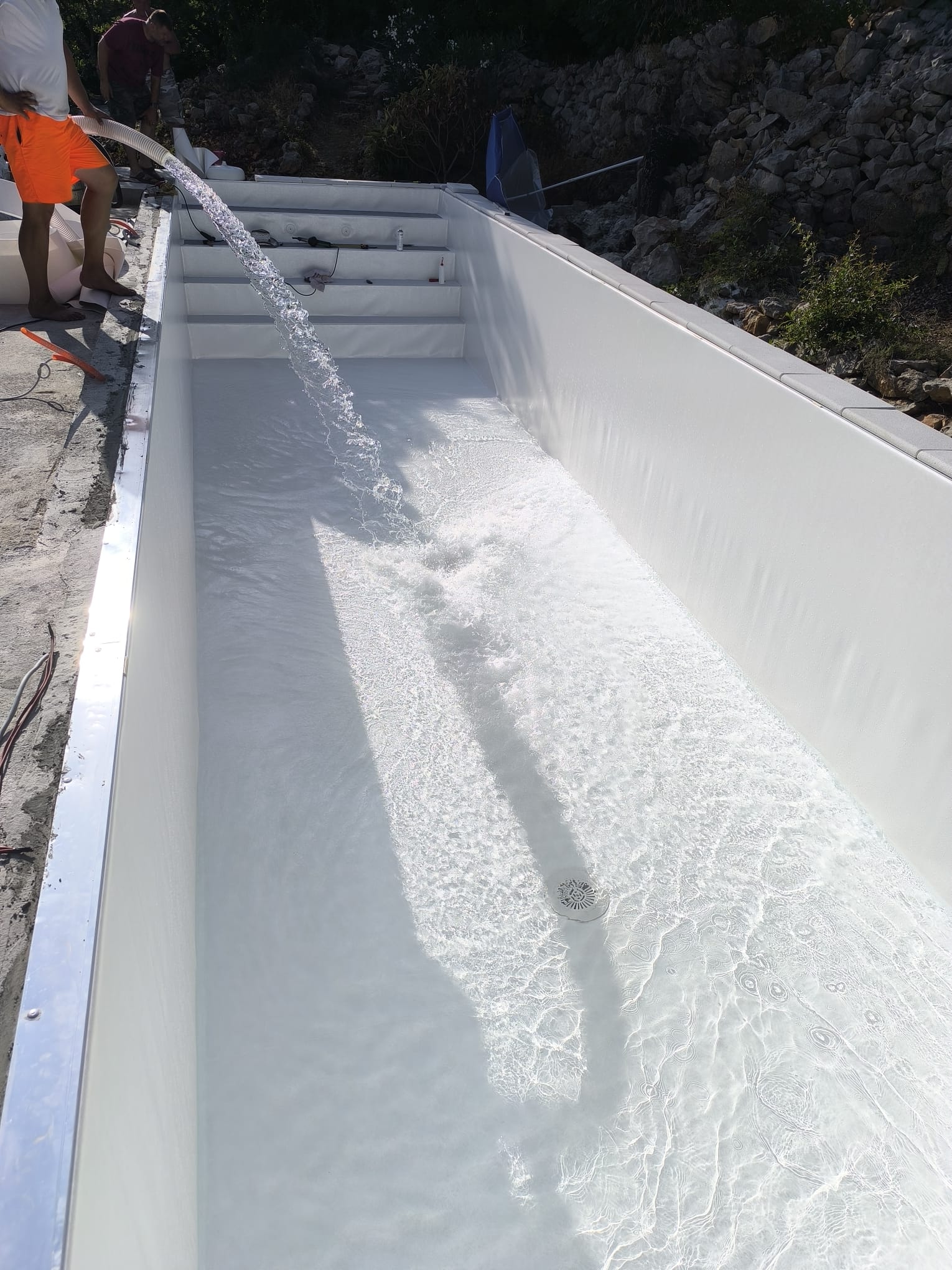 Projekt izgradnje bazena na Hrvaškem, ki vključuje vgradnjo rolo pokrivala, integriranega zvočnega sistema, naprednega filtracijskega sistema ter celotno gradnjo bazenske konstrukcije.