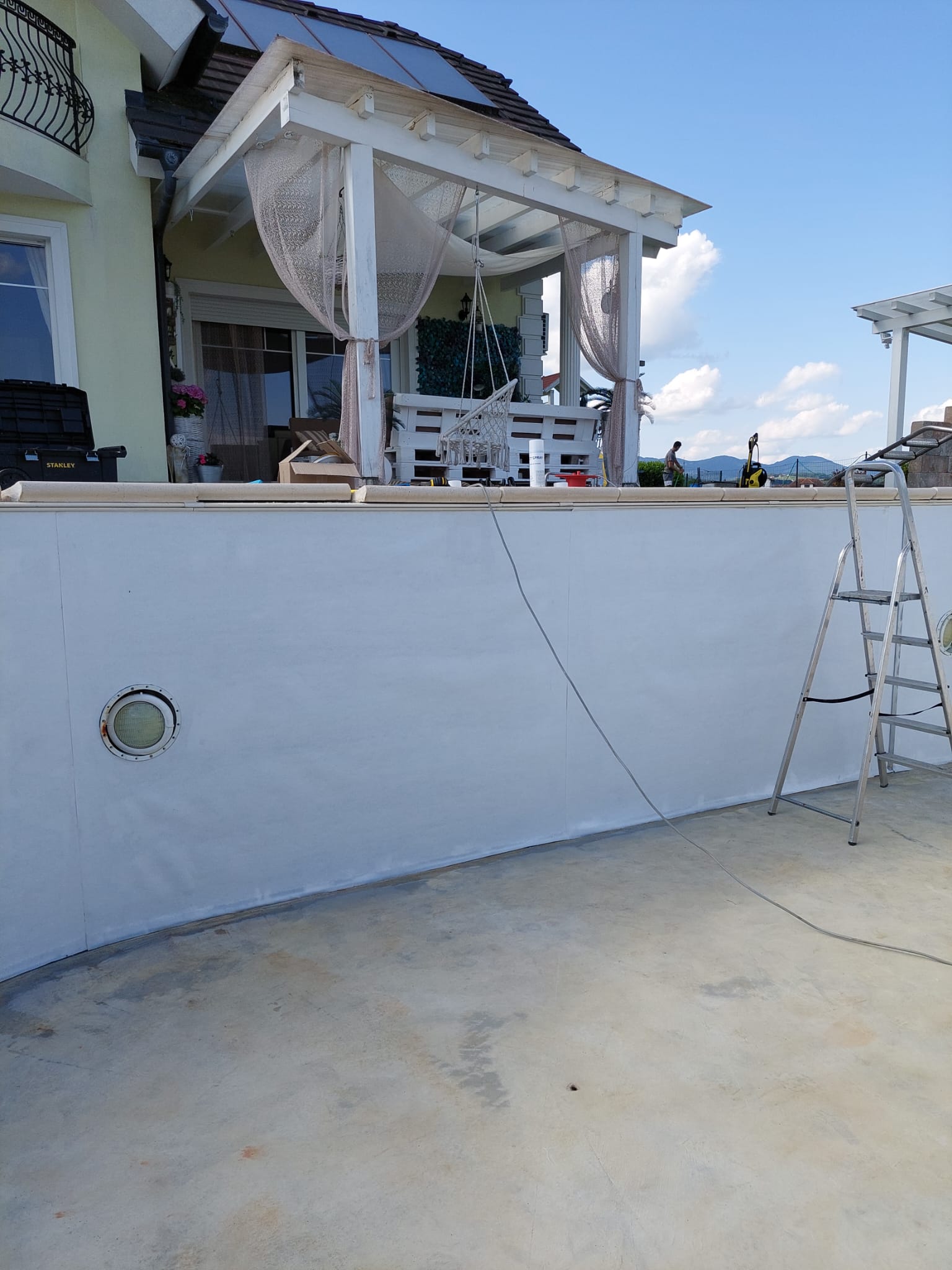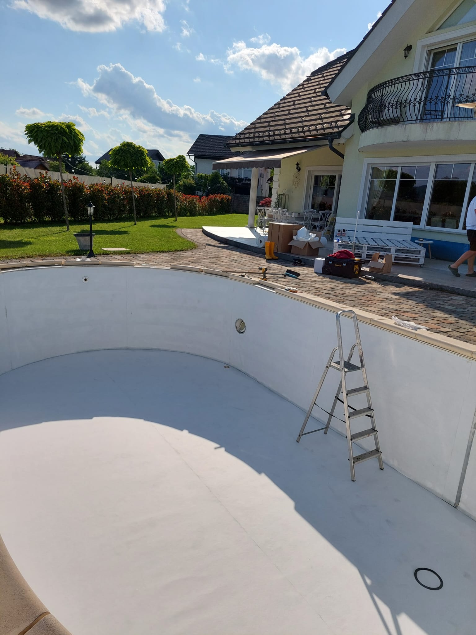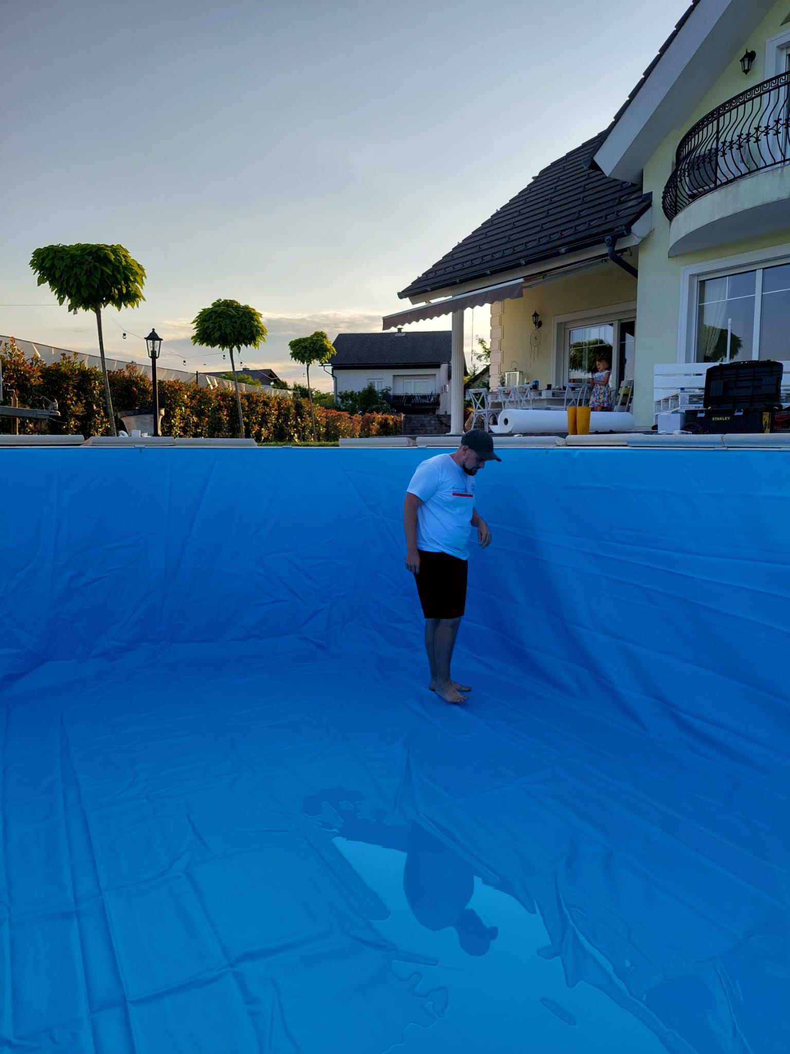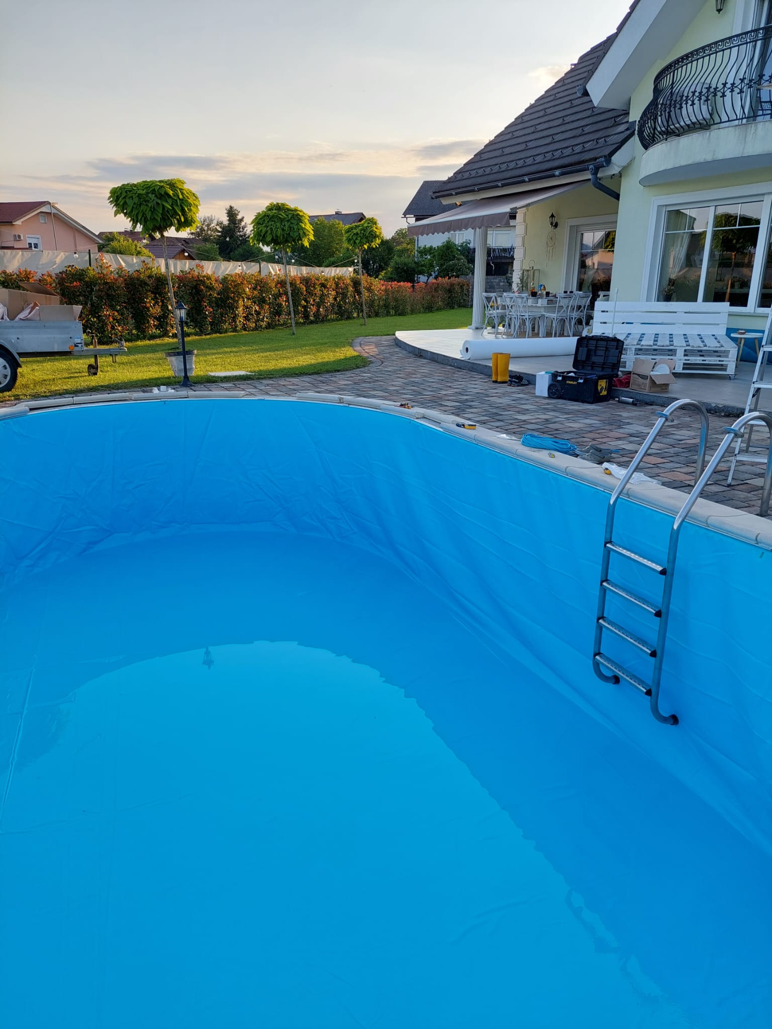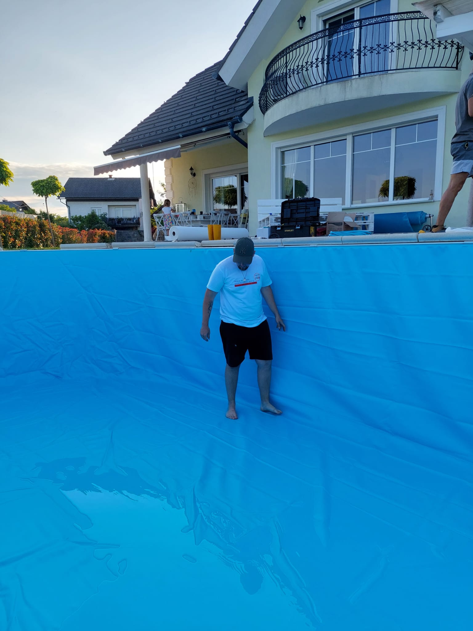 V letu 2024 smo izvedli prenovo bazena za Rebeko Dremelj, ki je vključevala odstranitev dotrajane folije, pripravo podlage ter vgradnjo nove bazenske folije.
