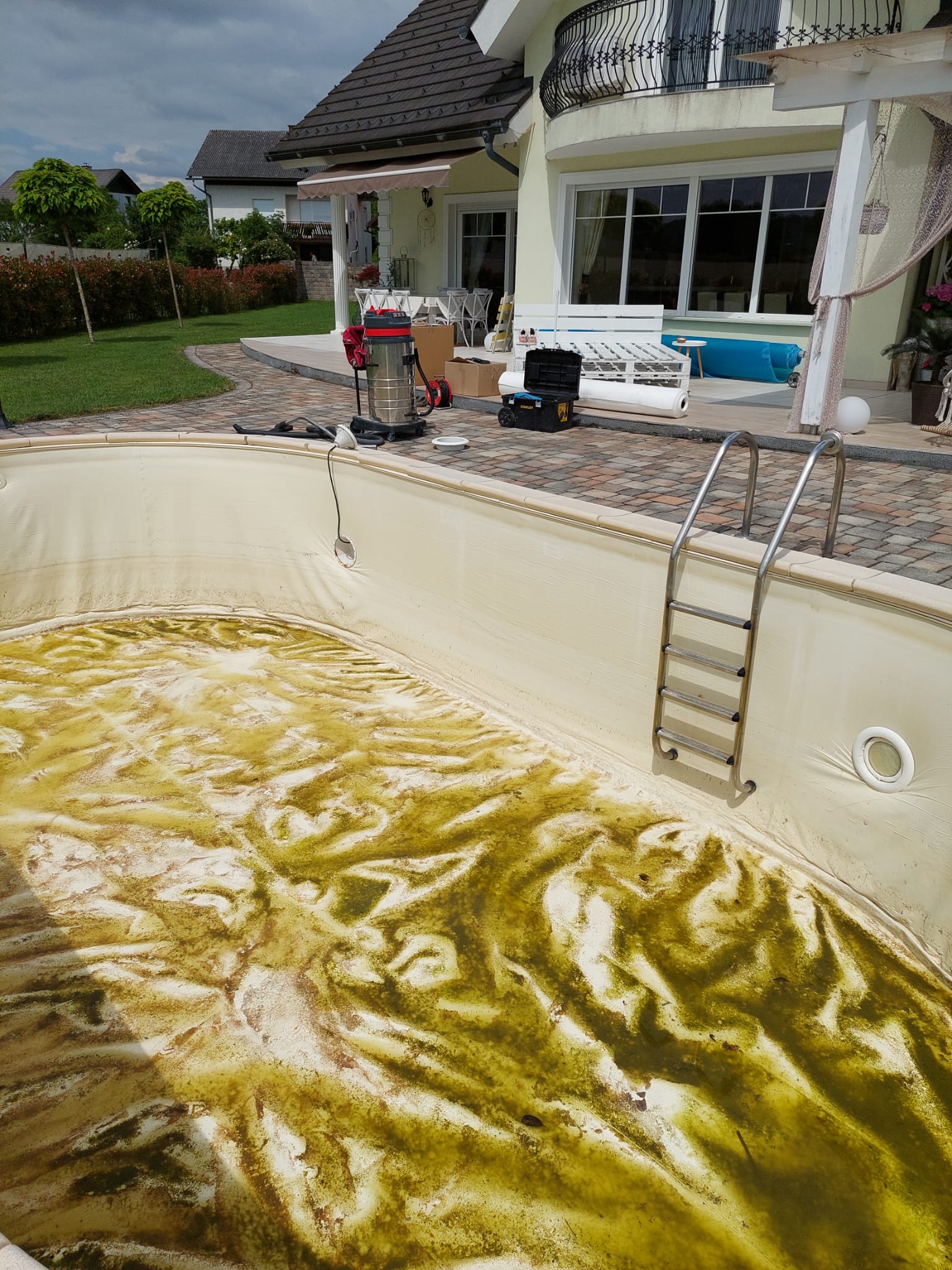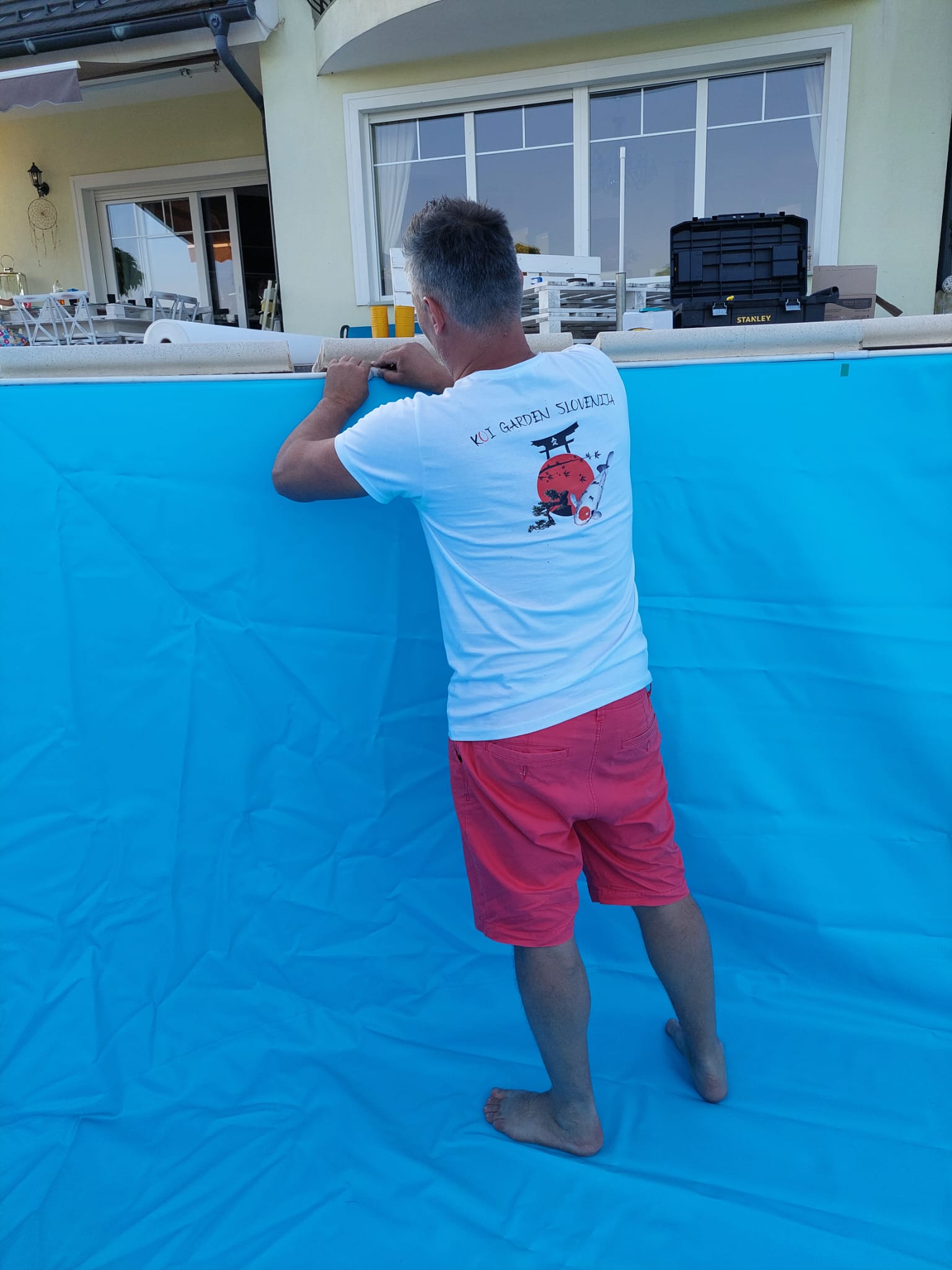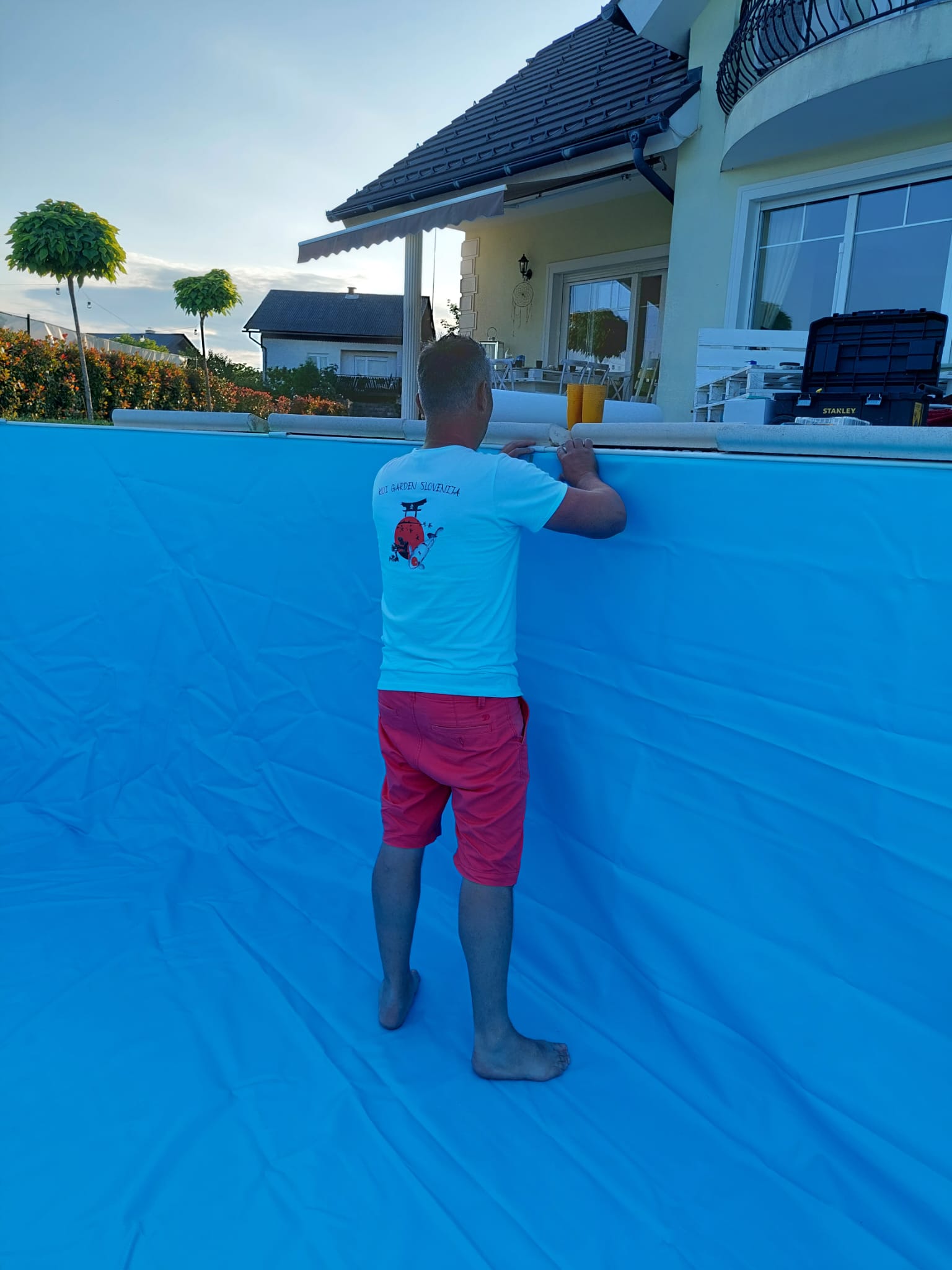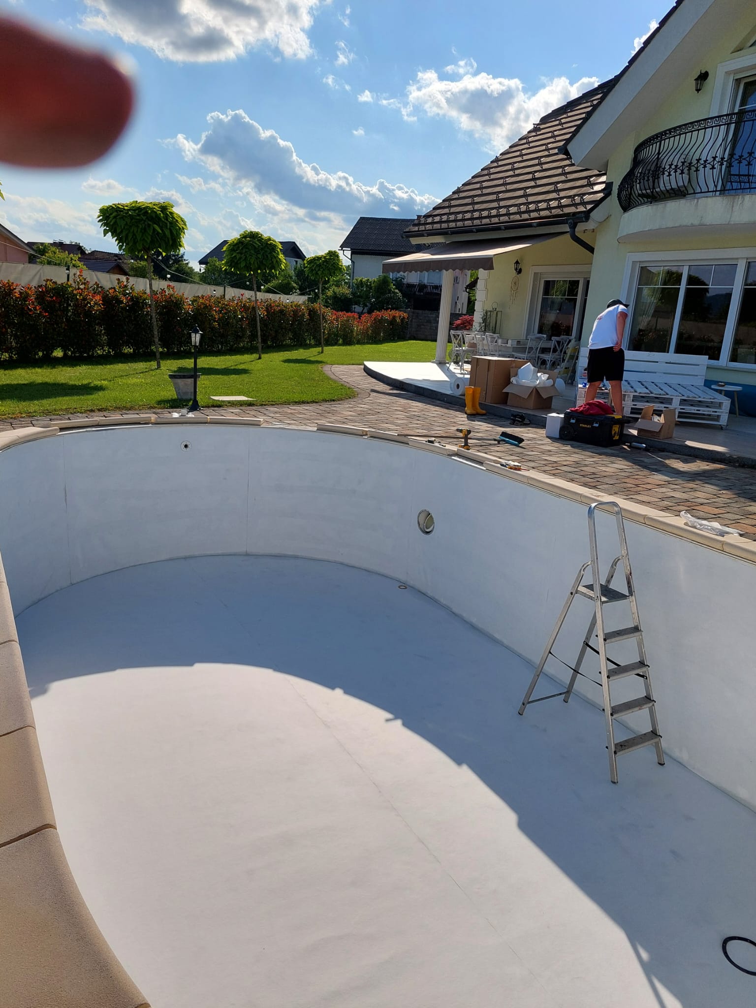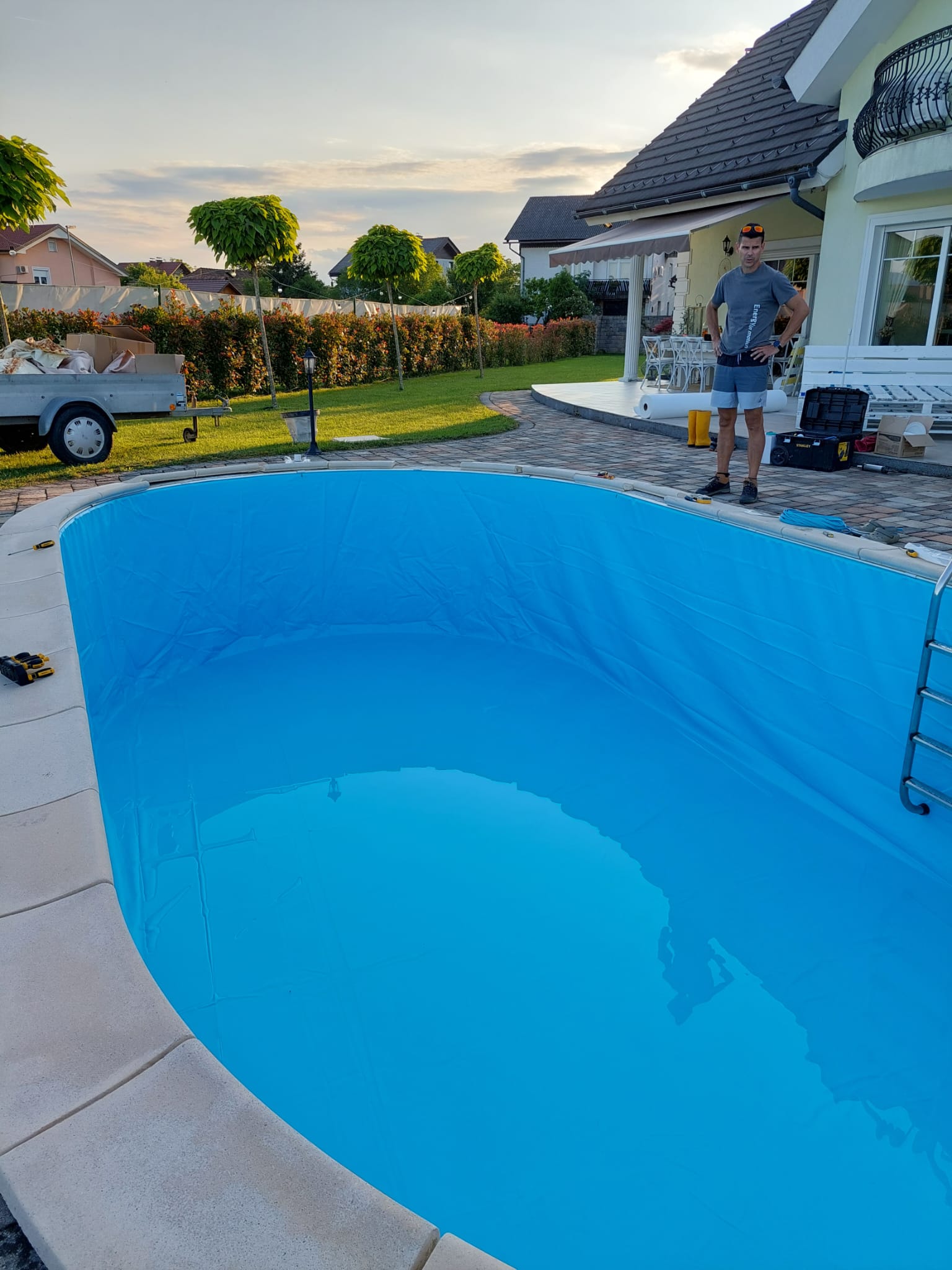 V letu 2024 smo izvedli prenovo bazena za Rebeko Dremelj, ki je vključevala odstranitev dotrajane folije, pripravo podlage ter vgradnjo nove bazenske folije.